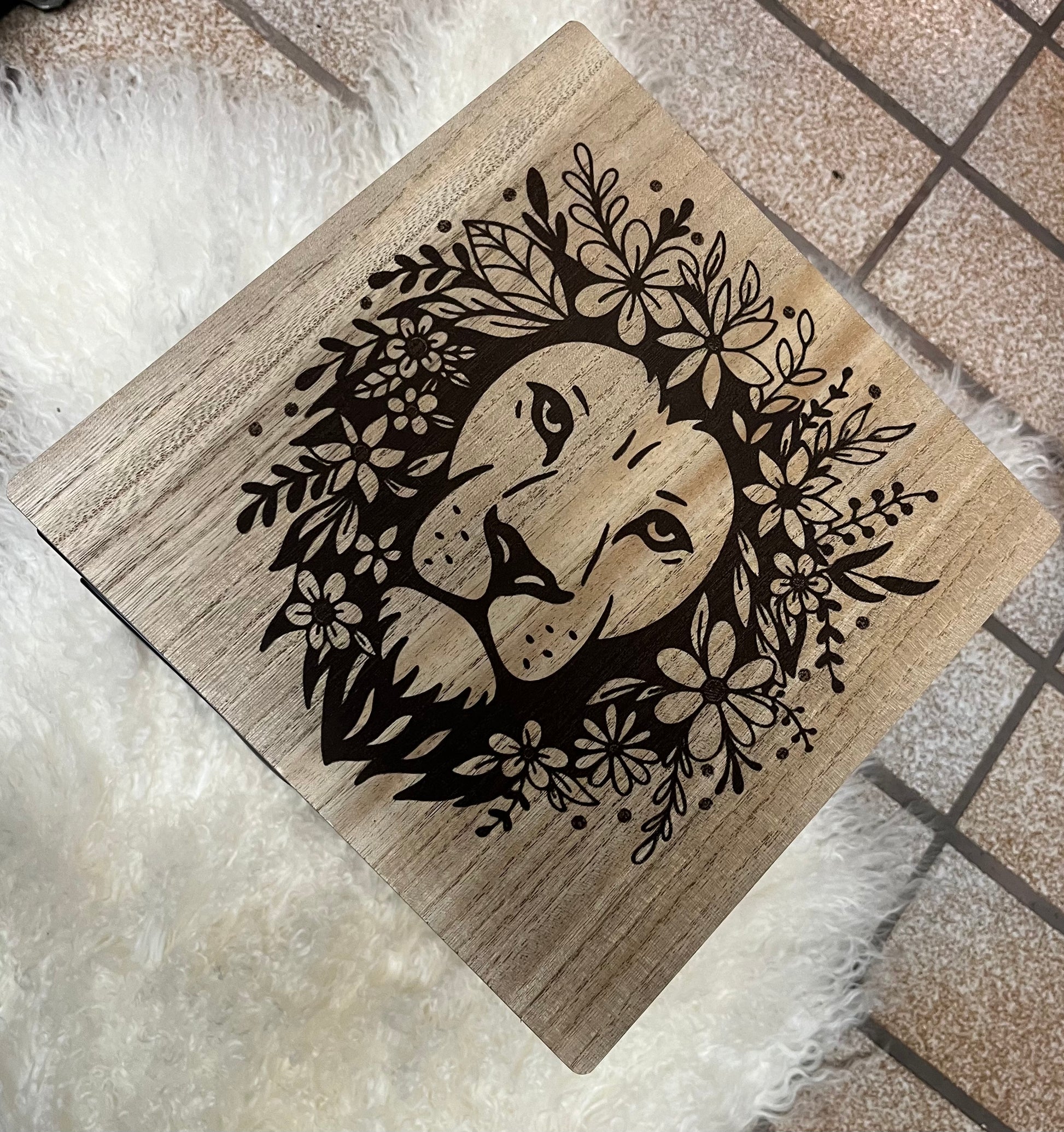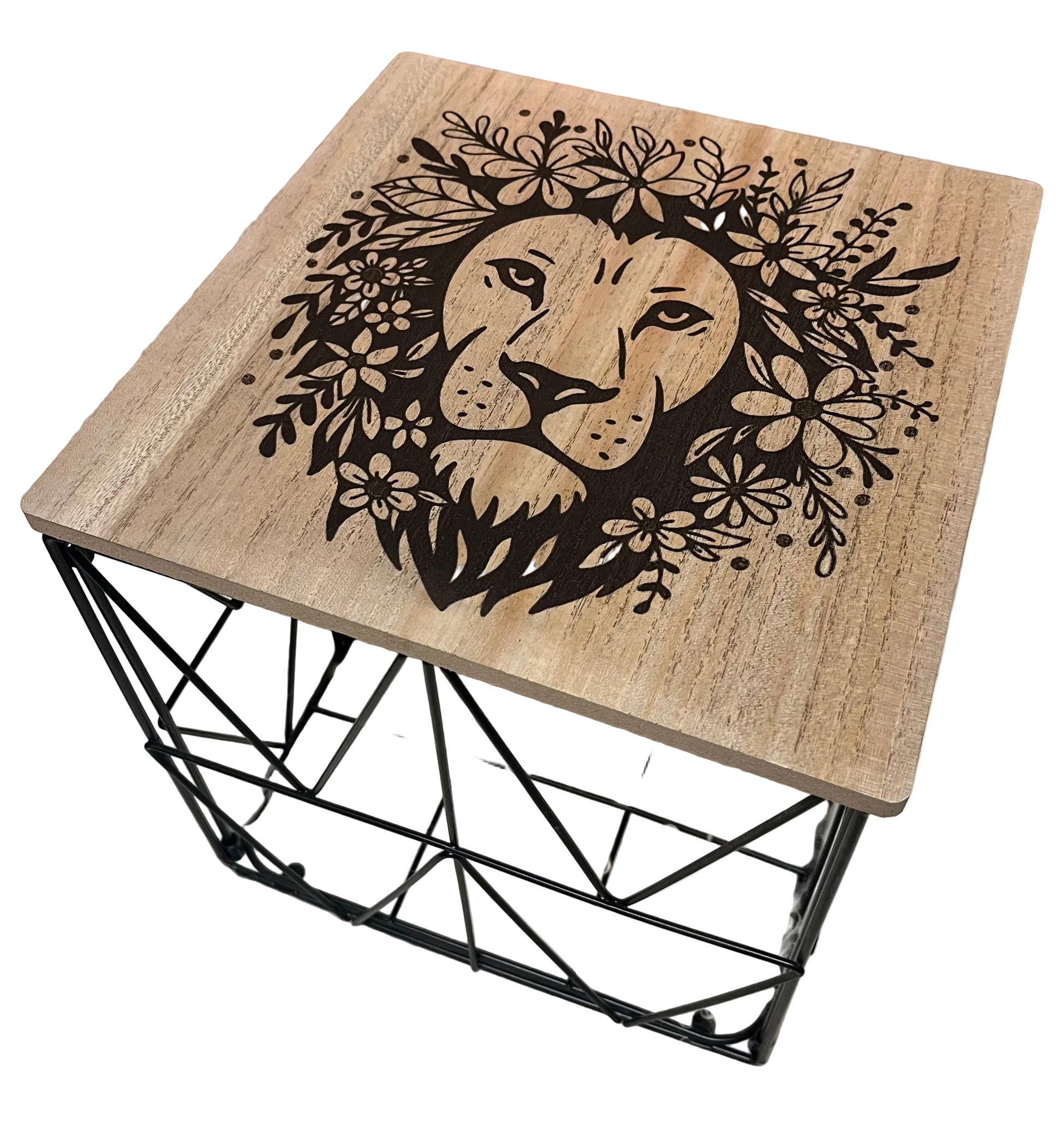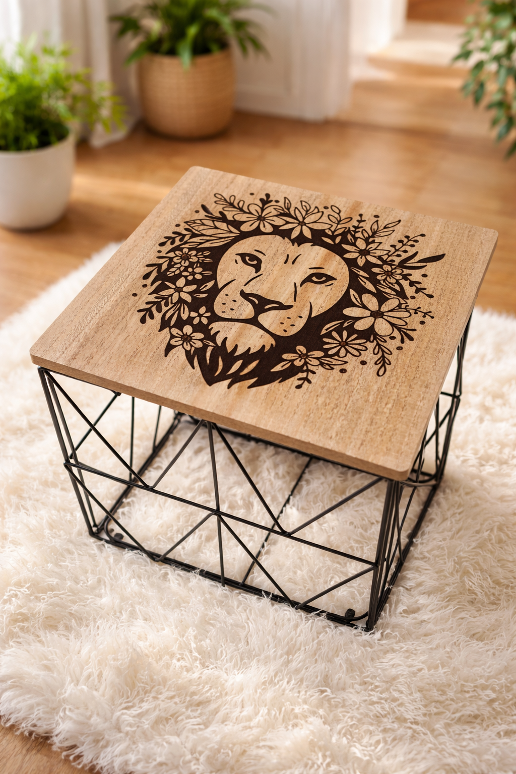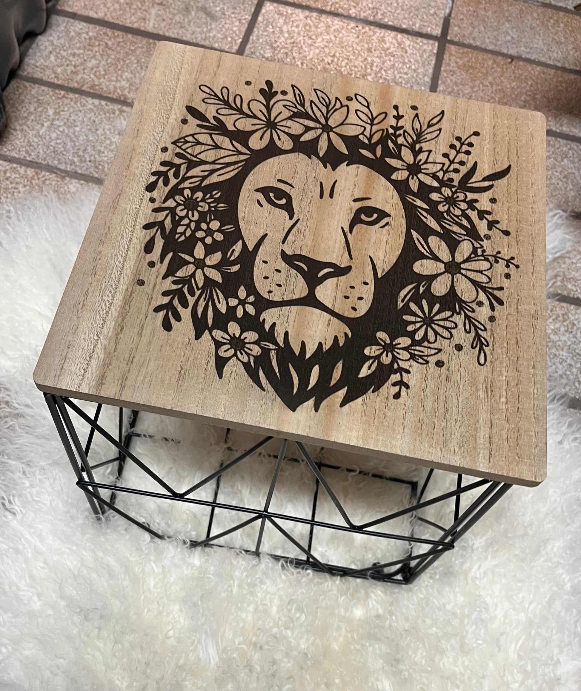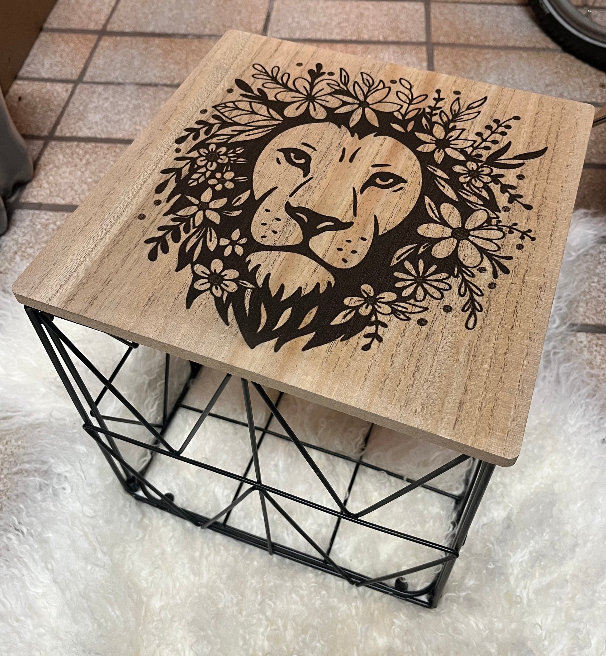 Beistelltisch mit Löwenmotiv – Lasergravur auf Holz